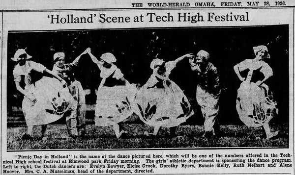 - Omaha World Herald. “‘Holland’ Scene at Tech High Festival.” Page 4. May 28, 1926