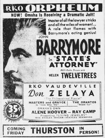 - Omaha World Herald. Ad for Orpheum Theatre. Page 53. May 29, 1932