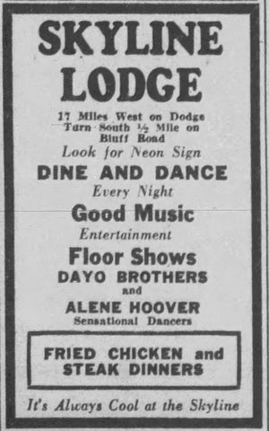 - Omaha Evening Bee News. Ad for Skyline Lodge. Page 24. August 28, 1936