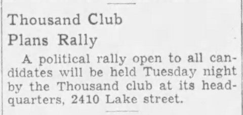 (Evening World Herald. “Thousand Club Plans Rally.” April 1, 1939)