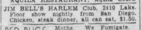 - Omaha Evening Bee. Ad for Jim Bell’s Harlem Club. August 19, 1937