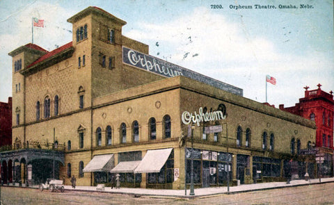 The original Orpheum building was built at 409 S 16th Street in 1895. By 1898, the Creighton Theater was added to the Orpheum vaudeville circuit, changing its name to the Creighton Orpheum theater, and eventually dropping ‘Creighton’ all together. A larger theater was built in 1927, changing the entrance to 16th Street. It boasted 2,600 seats and is still standing today in downtown Omaha. It featured vaudeville shows and then stage shows with motion pictures until the late 1940s when it was renovated to become solely a movie theater. It showed motion pictures until 1971 when it closed and was purchased by the Knights of Ak-Sar-Ben. Today the Orpheum Theatre is owned and operated by the Omaha Performing Arts Society.