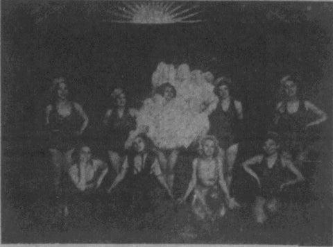 (Muskogee Times Democrat. “‘Gay Paree’ Popular” Show. Page 3. October 10, 1937) Photo of Nancy Miller and her cast of “Gay Paree”.