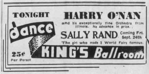 - Lincoln Nebraska State Journal. King’s Ballroom Advertisement for Sally Rand. Page 4. September 18, 1937