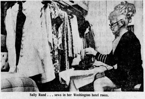 (Omaha World Herald. “Sally Rand…sews in her Washington hotel room.” Page 13. July 3, 1973)