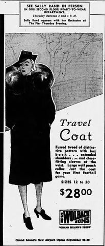 - The Grand Island Independent. Advertisements for Sally Rand Modeling Clothes. Page 12. September 21, 1937