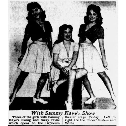 Caption Reads: “Three of the girls with Sammy Kaye’s Swing and Sway revue which opens on the Orpheum theater stage Friday. Left to right are the Robert Sisters and White.”