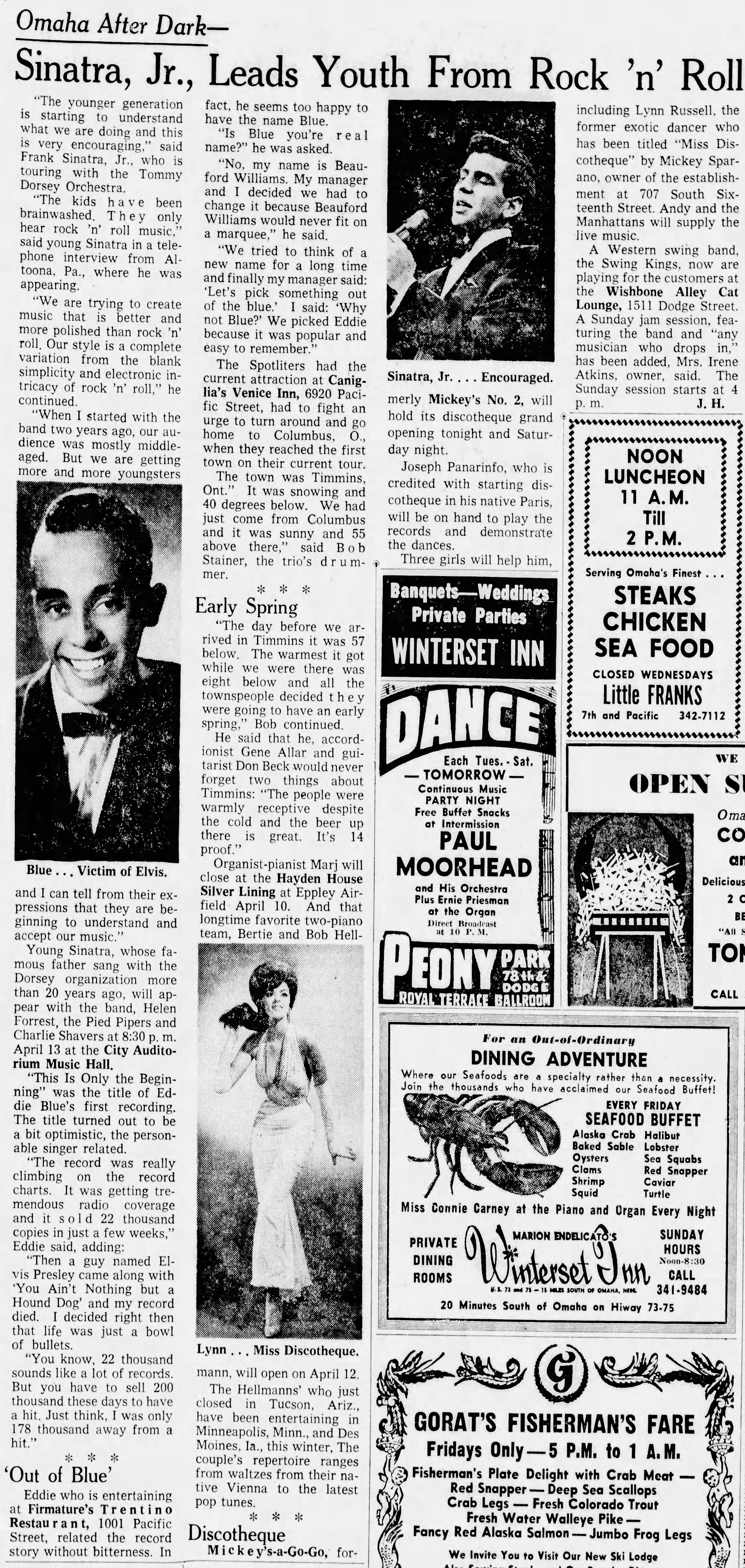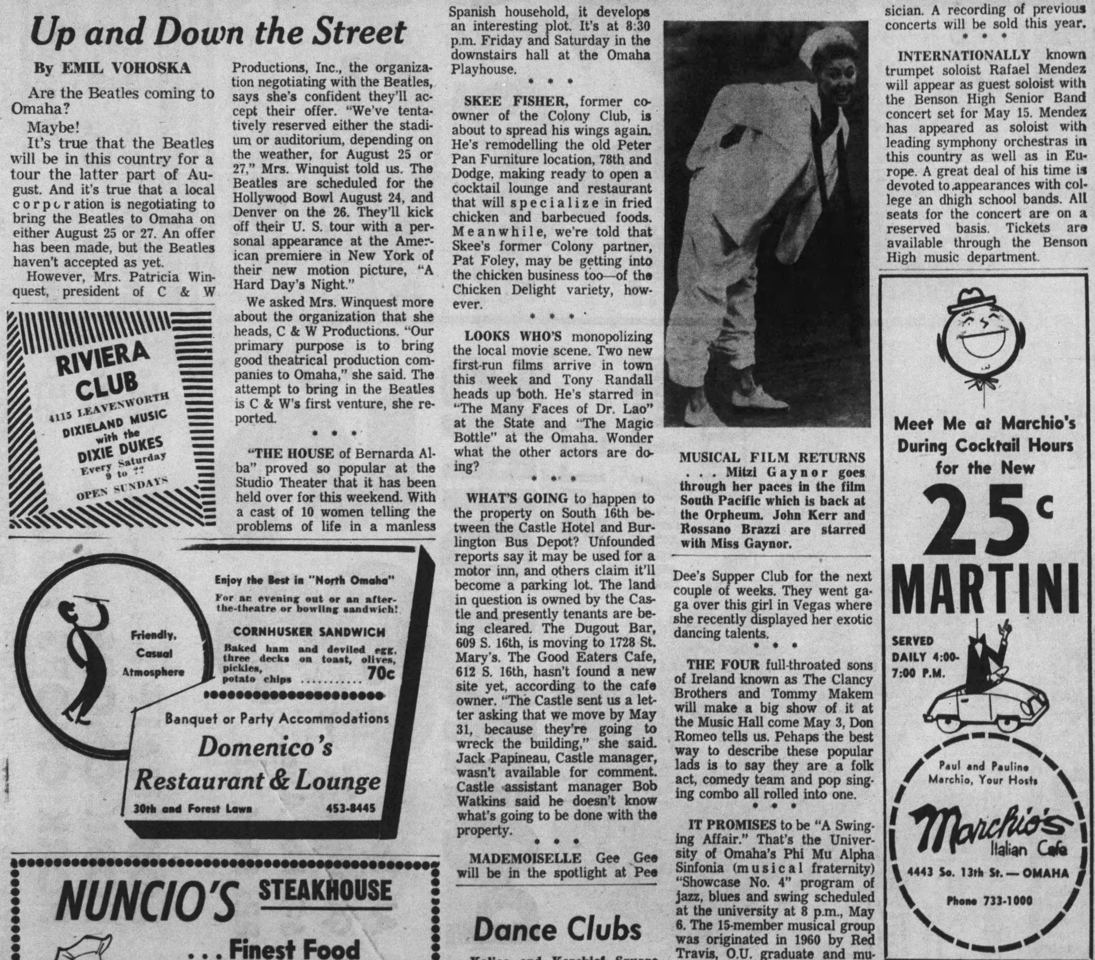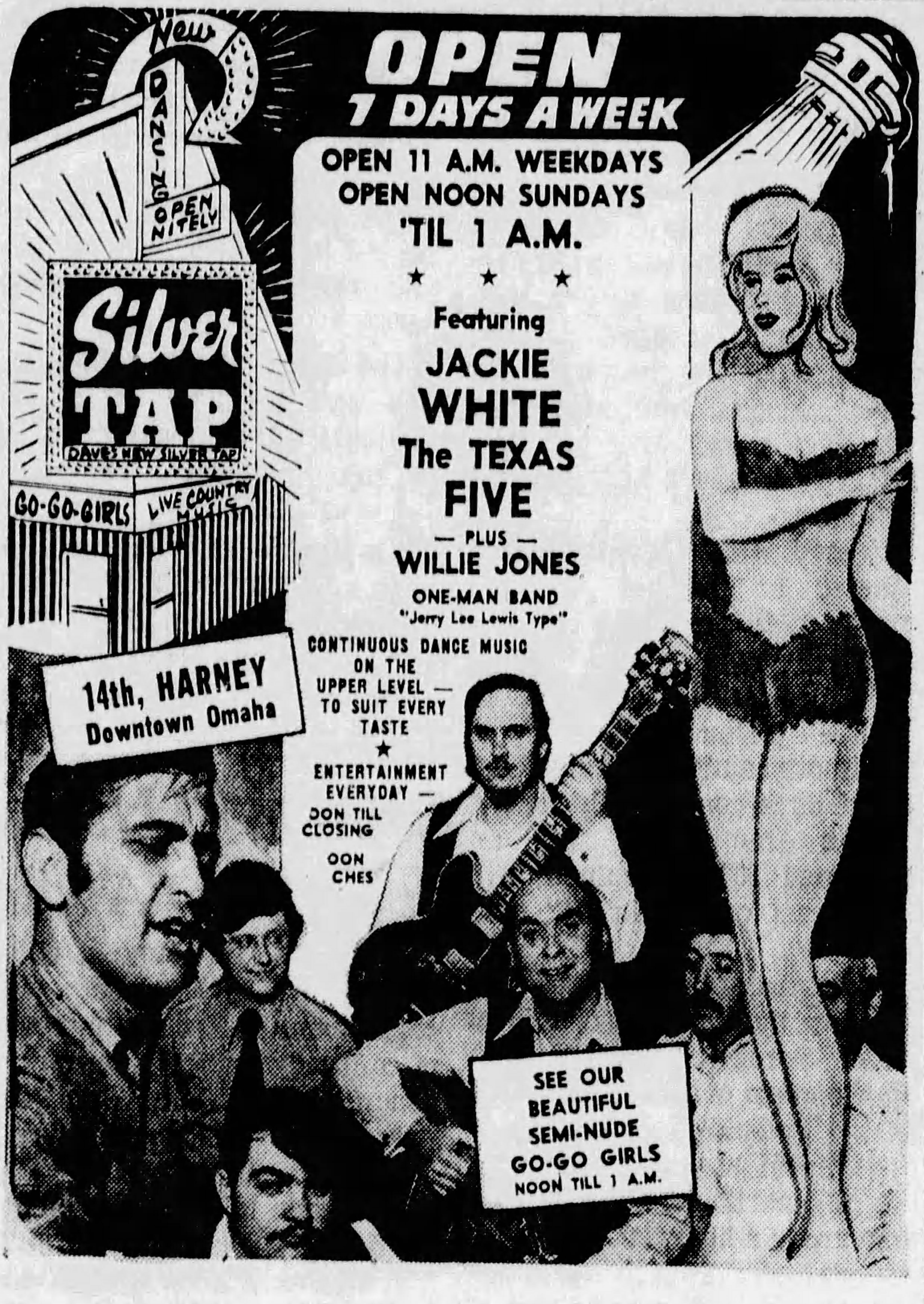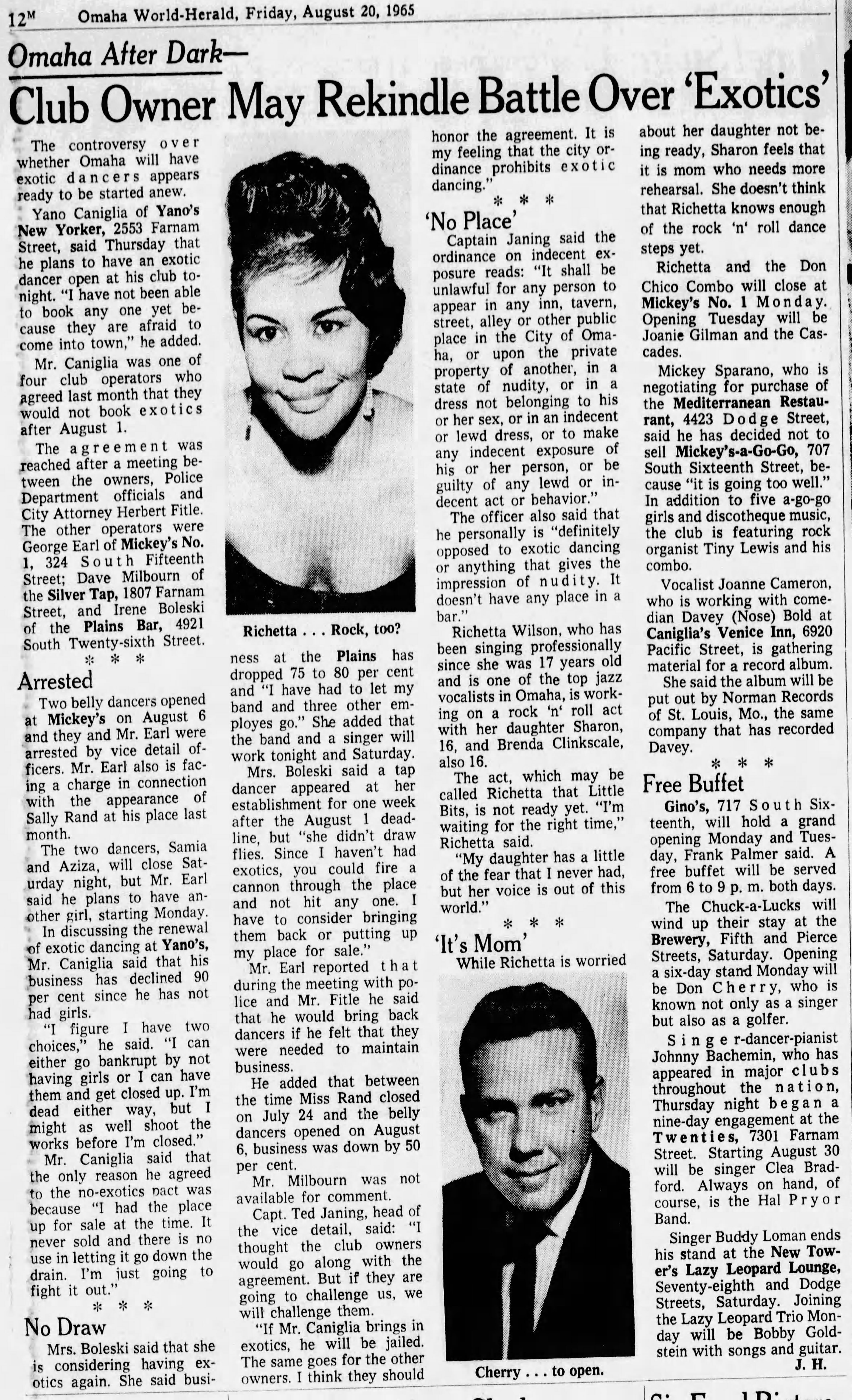 Cirino’s Lounge featured topless go-go dancers and in 1966 came under fire for exotics. Maree Lynn Custard, who boasted she was the ONLY topless a-go-go girl in Omaha, was convicted of indecent exposure in April 1933.
