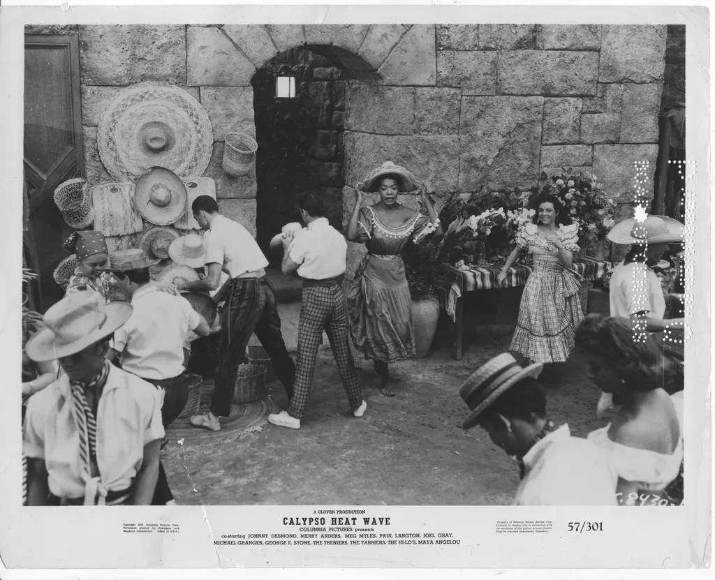 Angelou appeared in the film Calypso Heat Wave, performing her own compositions. This musical revue-style film was part of Hollywood’s attempt to capitalize on the popularity of calypso music. Angelou’s appearance was brief but memorable, showcasing her as a dynamic performer with a commanding stage presence. She sang her own songs, including “Run Joe” and “Scandal in the Family,” alongside “All That Happens in the Market Place.”