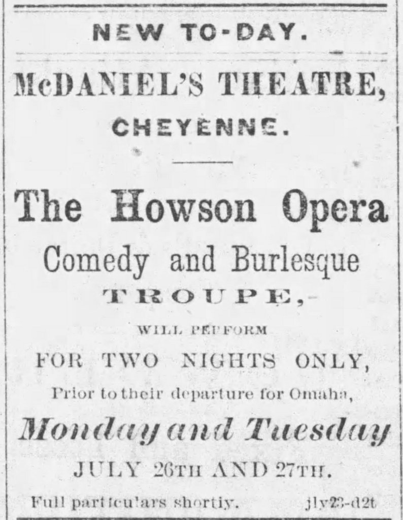 - The Democratic Leader. Ad for McDaniel’s Theatre. Page 4. July 23, 1869