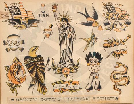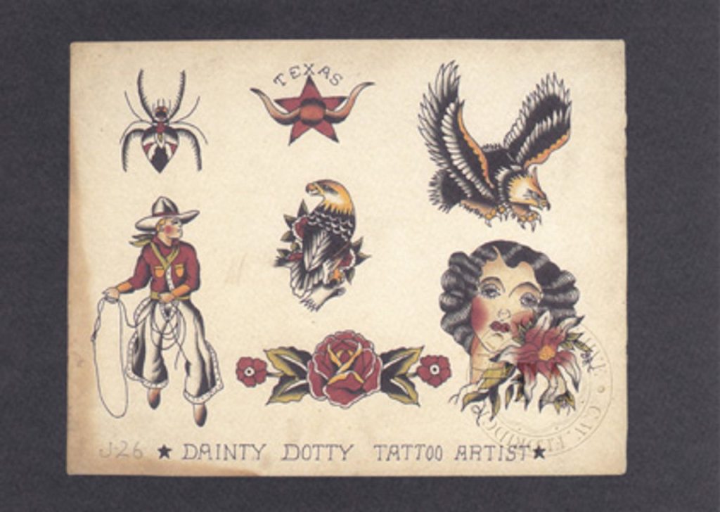 While no confirmed photographs” of “Dainty Dotty’s” tattoos survive, we do have documented drawings attributed to her hand — visual records that offer rare insight into her artistic style and technical skill.