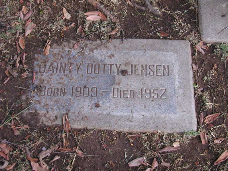 Florence “Dainty Dotty” Jensen’s later years remain largely undocumented, a quiet fade from the spotlight she once commanded. What we do know is that she died of a heart attack on December 17, 1952, at the age of 43, and was buried in Evergreen Cemetery in Boyle Heights, Los Angeles — one of the city’s oldest and most culturally layered cemeteries. Established in 1877, Evergreen became a resting place for circus and carnival performers through the Pacific Coast Showmen’s Association, which dedicated a section in 1922 known as “Showmen’s Rest.”