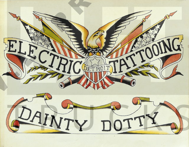 In the late 1930s, Florence “Dainty Dotty” Jensen began tattooing in Detroit, a city then booming with industrial labor, wartime manufacturing, and a growing tattoo scene. Detroit was home to J.G. Barber, one of the earliest American tattoo artists to operate a formal studio, and it was a hub for machinists and craftspeople.