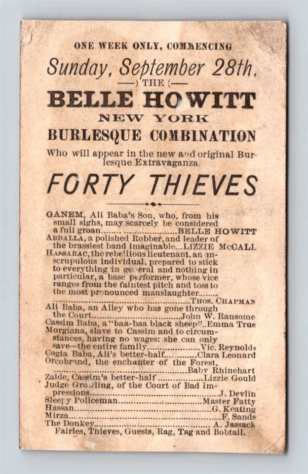 The Belle Howitt Burlesque Company toured regional theaters, bringing the British Blondes’ signature mix of parody, music, and dance to audiences beyond New York. This expansion helped sustain burlesque’s popularity into the 1880s, even as tastes shifted toward vaudeville and variety shows.