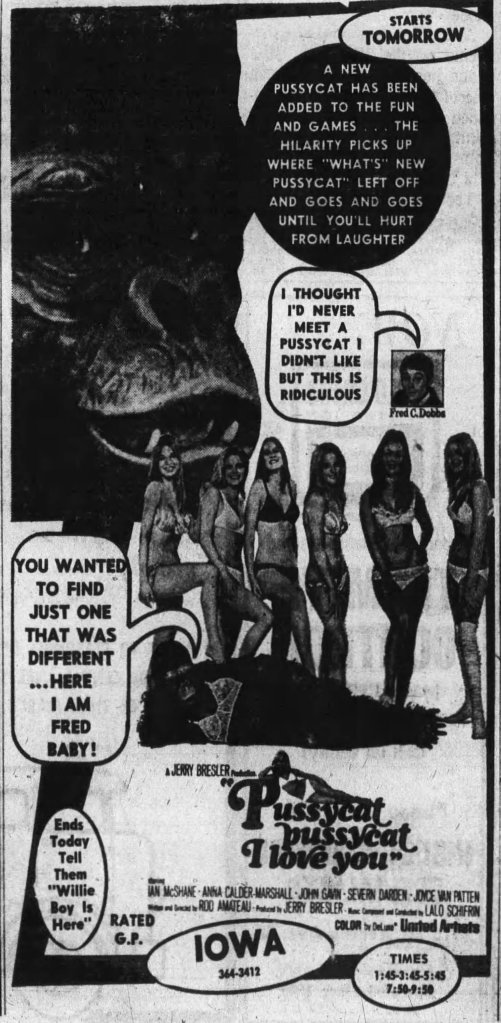 - The Gazette. Ad for the Iowa Theater. Page 18. March 24, 1970
