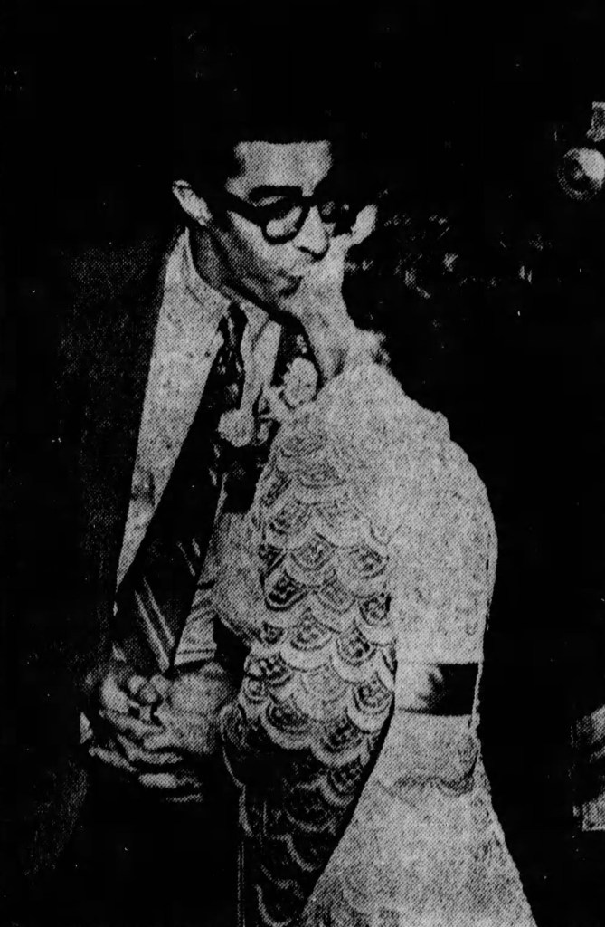 Peter Lane and Judy Telford, both 29, tied the knot at a go-go nightclub called the Lounge, a popular night spot in July 1970. They were married on the go-go stage. After the ceremony, go-go girls took to the stage and resume dancing for the evening. Psychedelic lights illuminated the bride and groom’s faces.