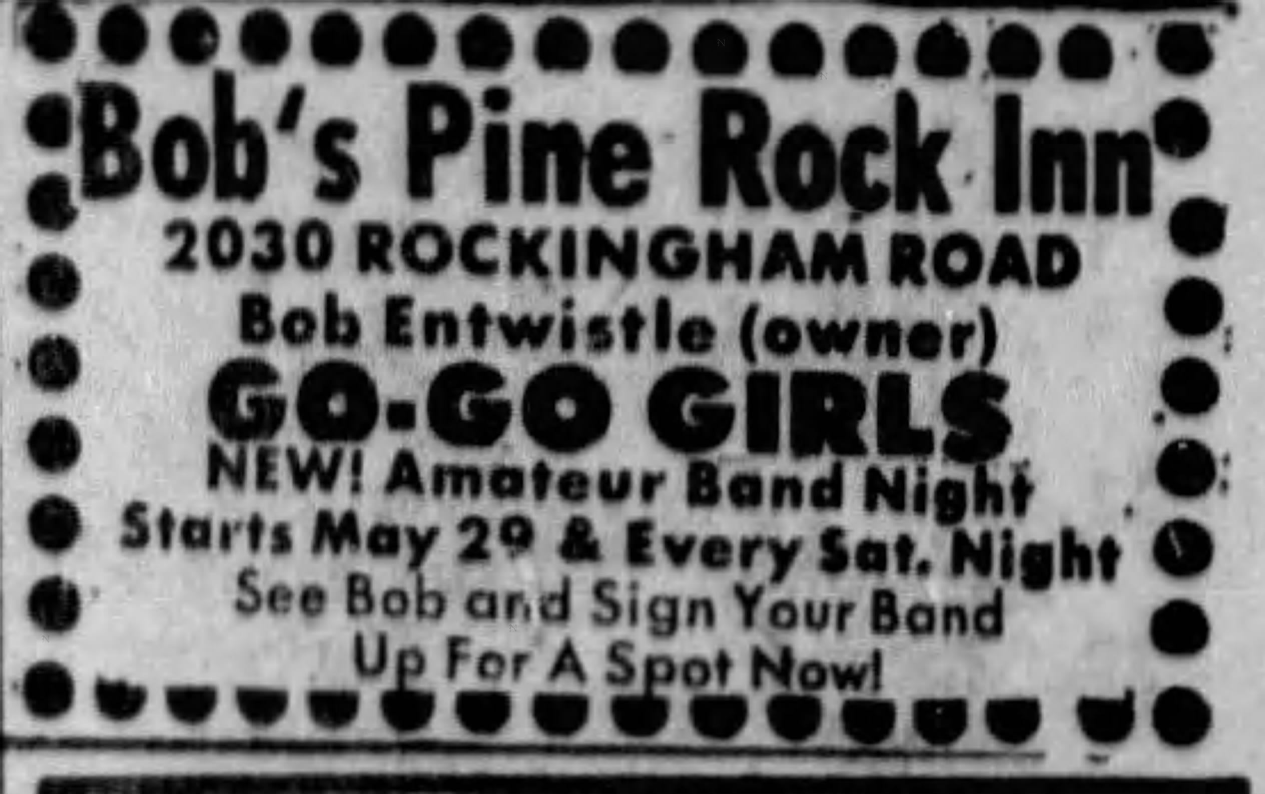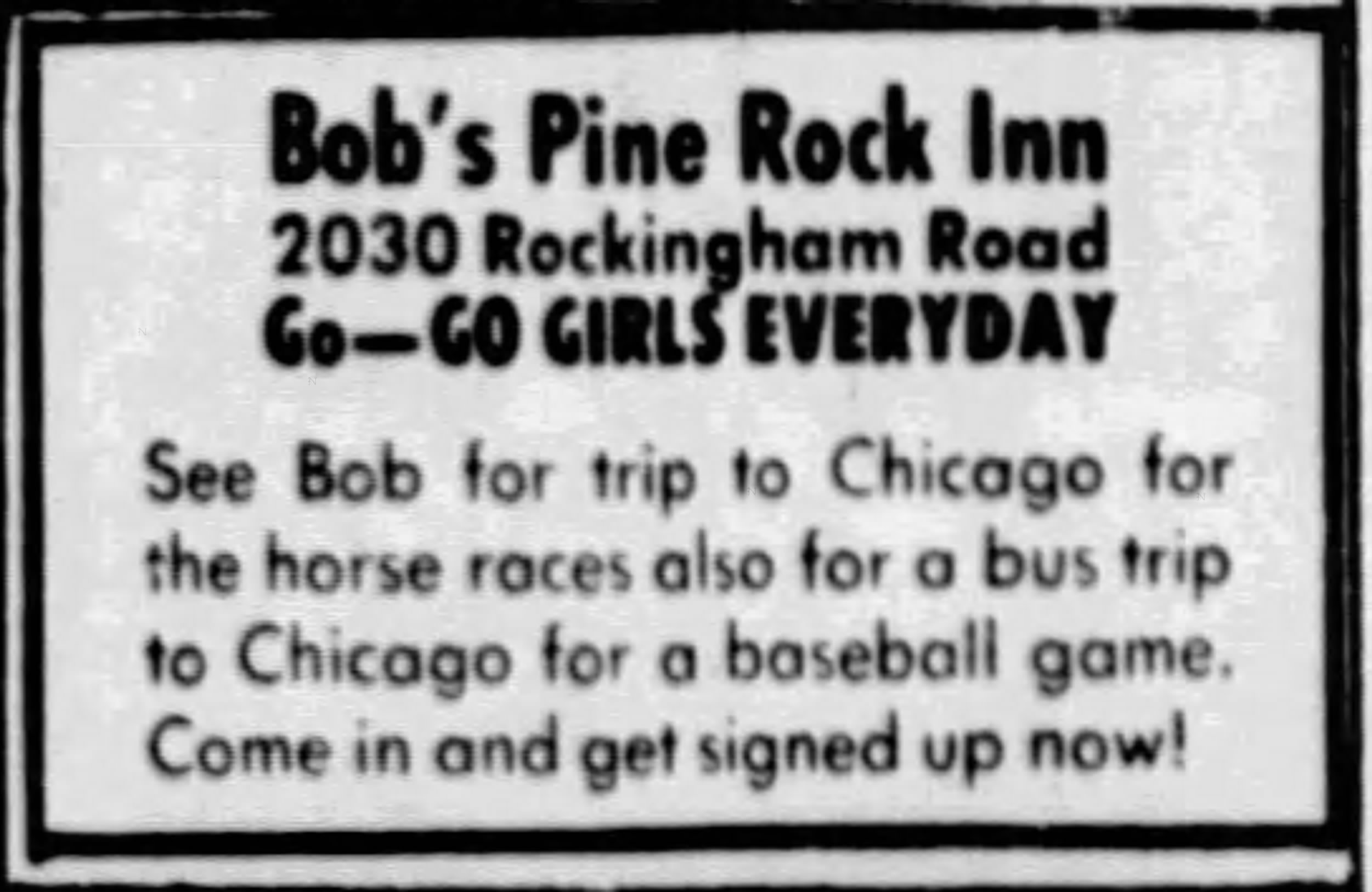 - Bob’s Pine Rock Inn or Bob’s Bull Pen – 2030 Rockingham Road