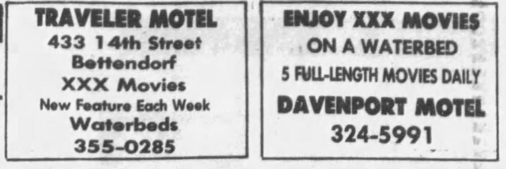 Their presence reflected both the loosening of obscenity laws in the 1970s and the growing appetite for alternative, sometimes transgressive cinema. In Davenport and the surrounding cities, these venues became part of the broader nightlife ecosystem: places where patrons sought anonymity, novelty, or simply a different kind of escape. The grindhouse era marked a distinct chapter in the region’s entertainment history, one shaped by changing technology, evolving moral debates, and the gritty charm of theaters that thrived on the margins.