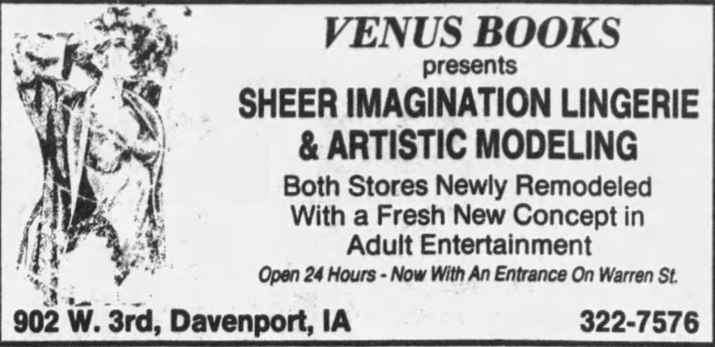 By the 1990s, Davenport’s burlesque scene operated within a clearer legal framework. Iowa law allowed stripping as long as no live sex acts occurred and clubs followed the rules tied to their liquor licenses. Within those boundaries, local venues continued to feature dancers, adapting their stages and schedules to stay compliant while keeping the city’s long tradition of erotic entertainment alive.