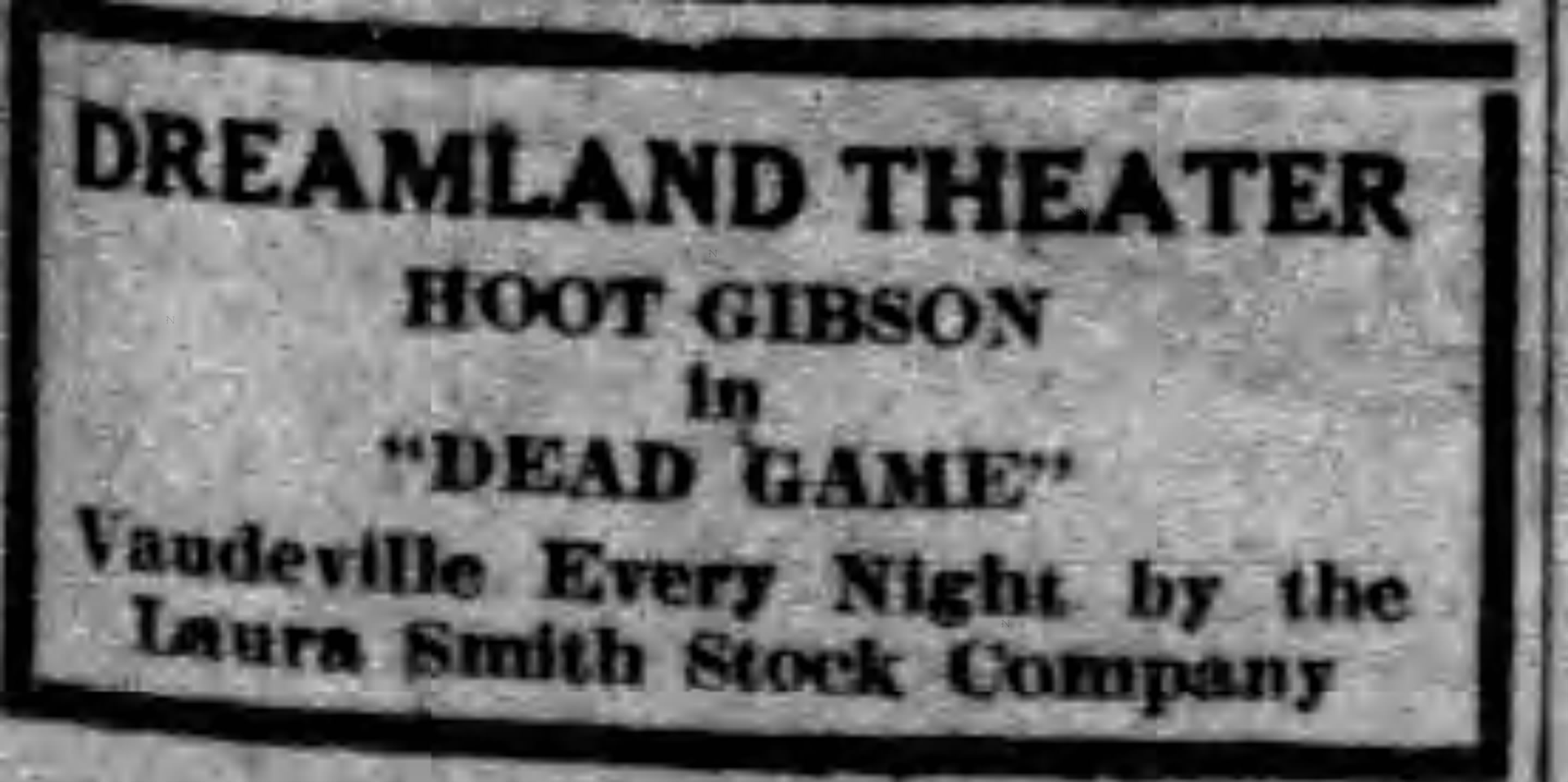 - Hoot Gibson in “Dead Game” and Laura Smith Stock Company every night (September 1923)