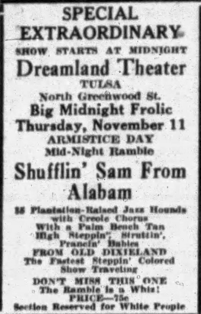 - The Tulsa Star. Ad for Fresh Salted Peanuts at the Dreamland Theatre. Page 3. December 21, 1918