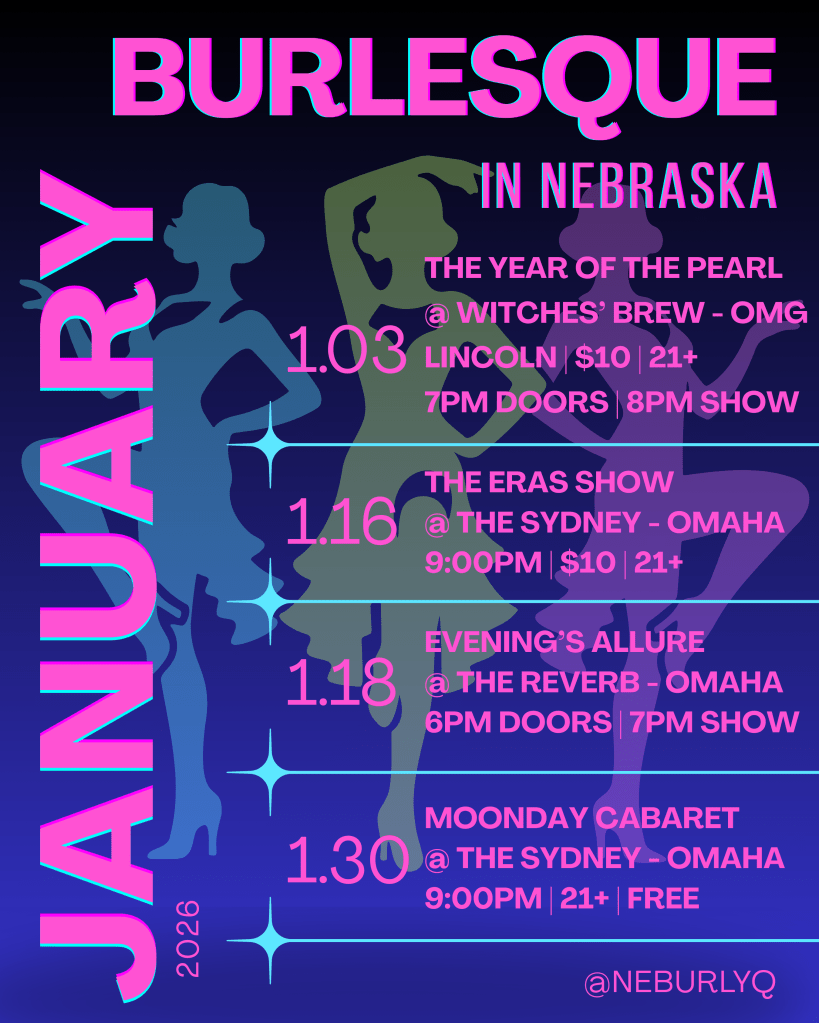 Start the new year with sparkle, sass, and sensational performances! Nebraska’s burlesque scene is heating up this January with four incredible shows you won’t want to miss. Whether you’re in Lincoln or Omaha, there’s a stage waiting for you to experience the art of tease.